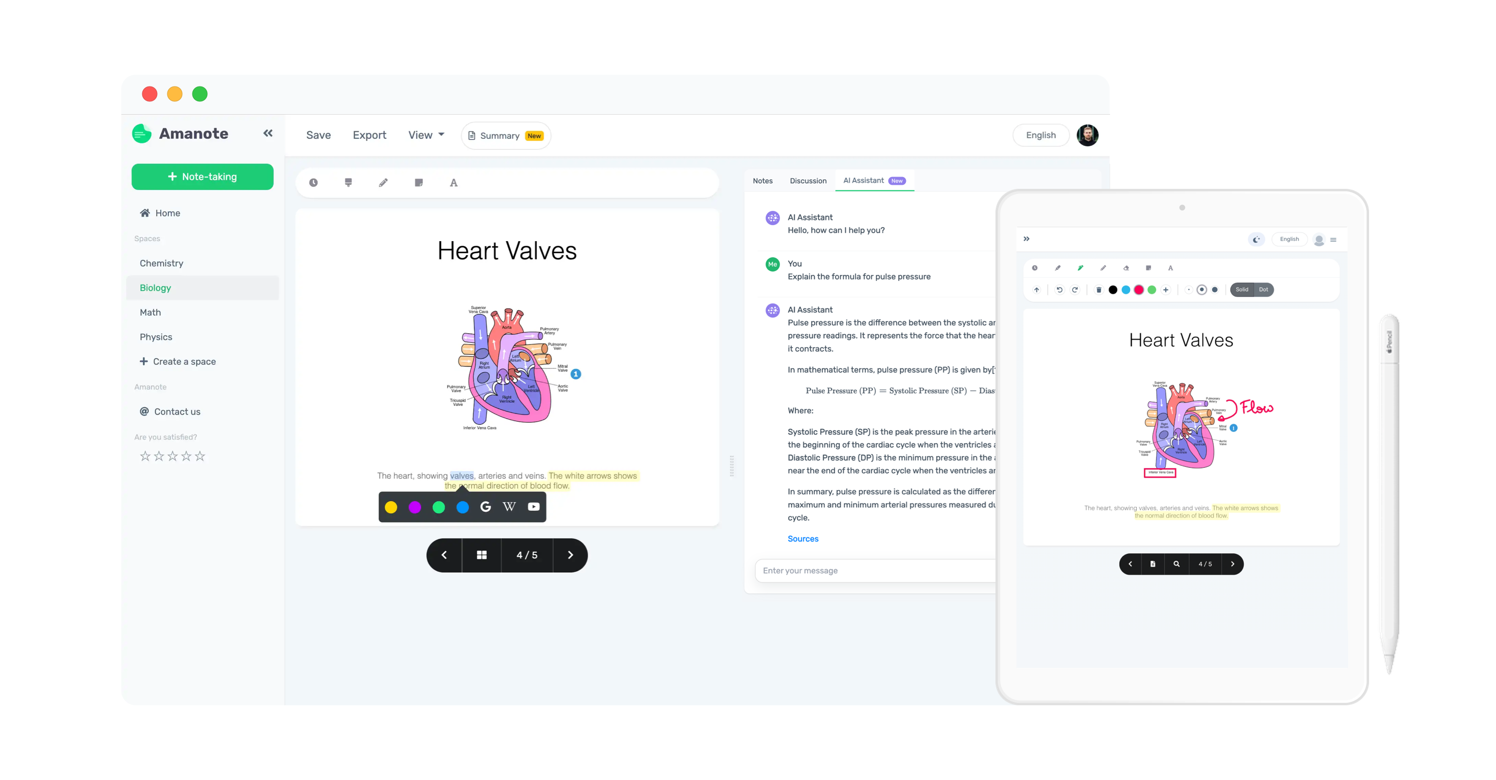• Insert images, formulas, drawings into its notes;